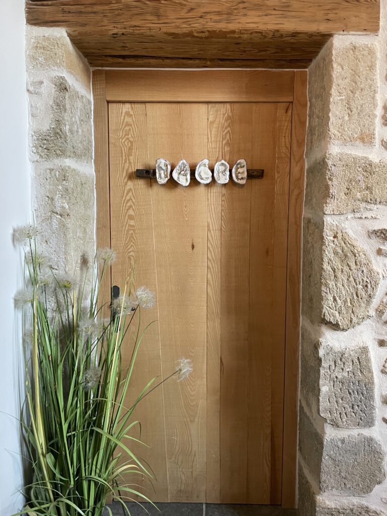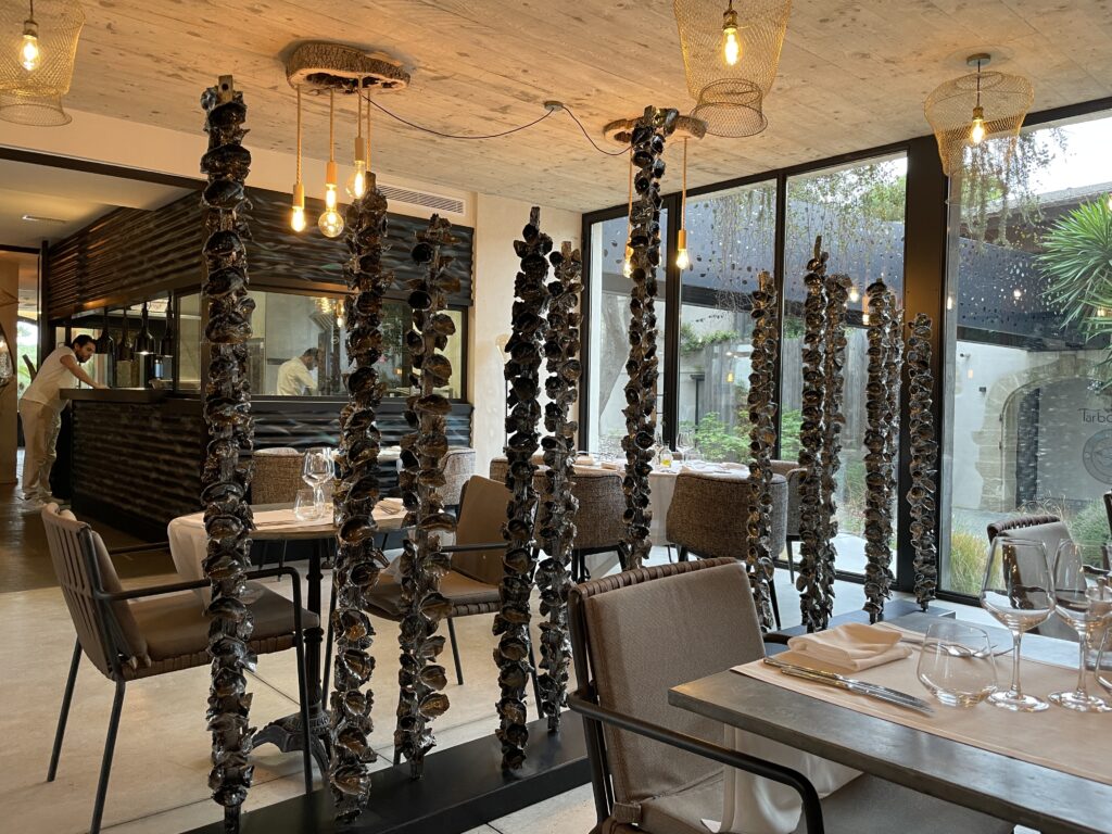 La demeure et les dépendances ont été rénovées par des artisans et artistes, avec des matériaux nobles et locaux, et décorées avec des produits issus de l’ostréiculture : le bois des caisses, les cordes des huîtres, les filets -pour les fauteuils- et du bois usé parcheminé par l’eau de mer ou de la lagune.
