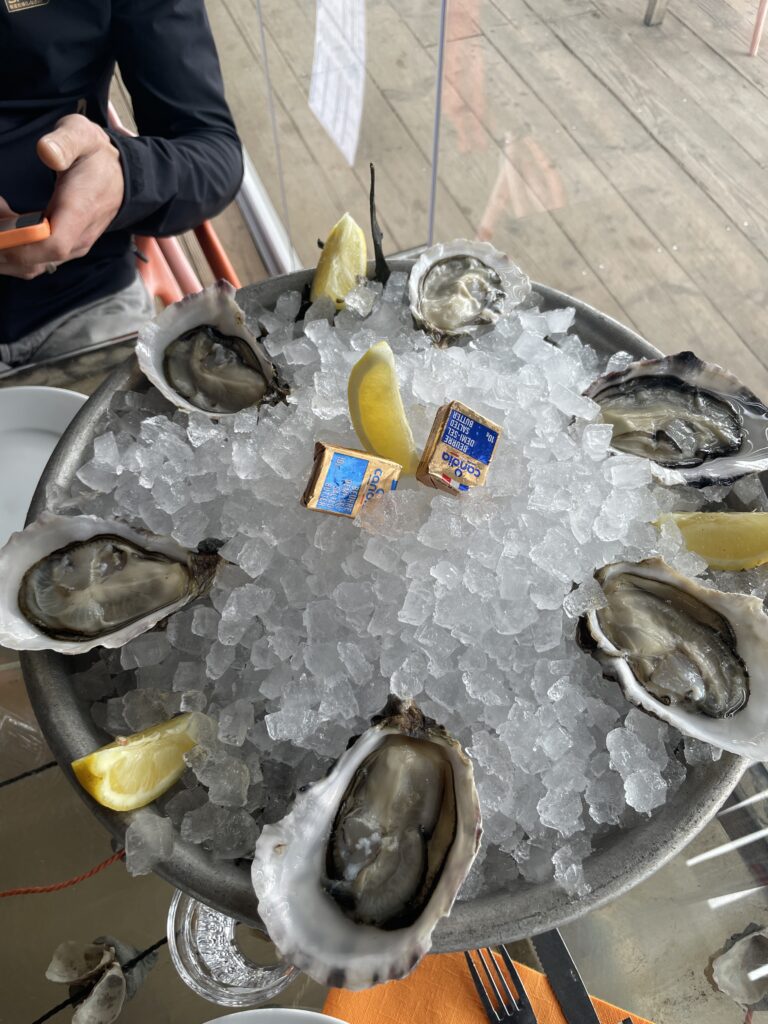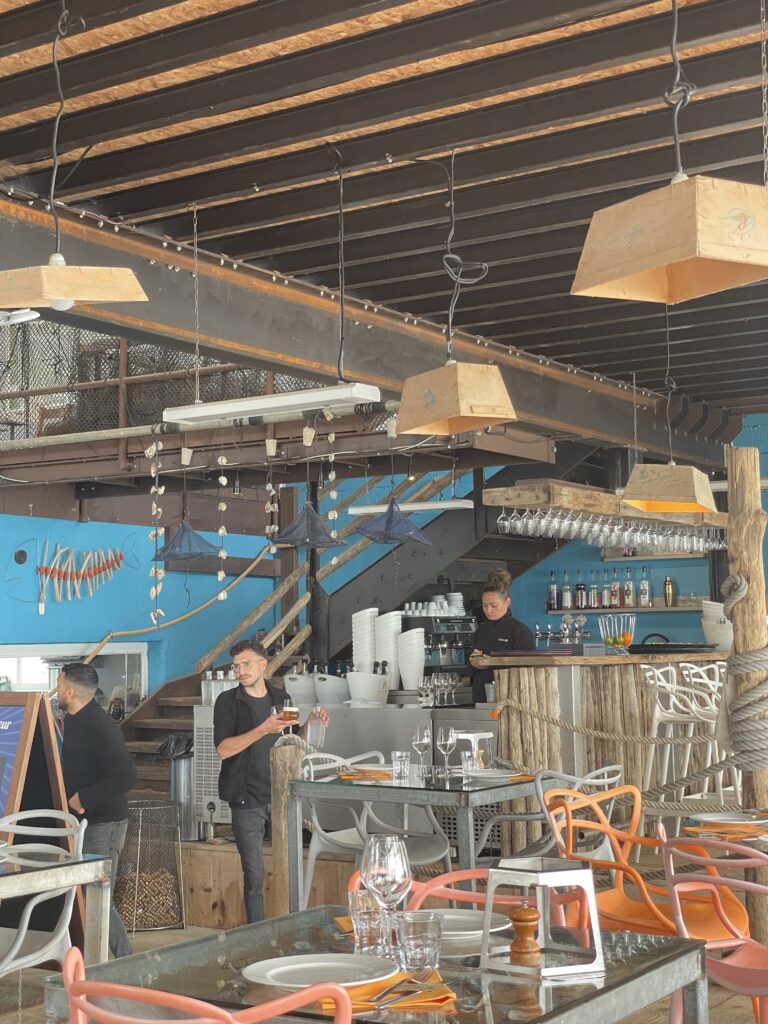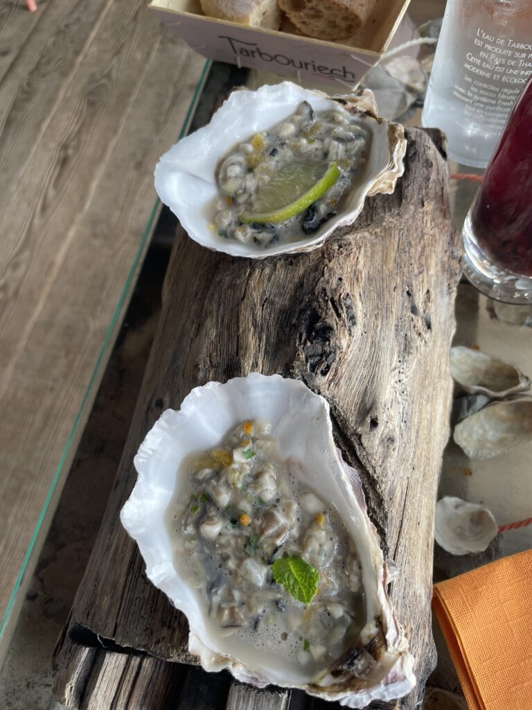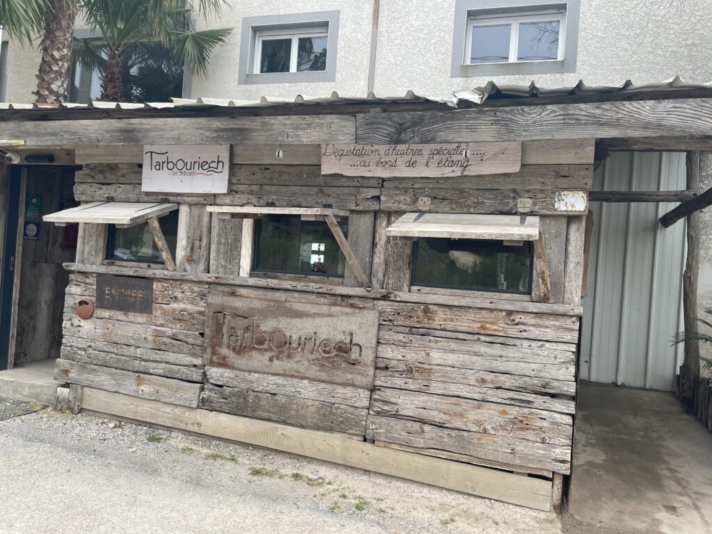 Ponton, lagon, eaux cristallines (sans le soleil c’est moins flagrant)…et ce « bistrot sur l’eau » pour déguster huîtres (et en particulier la « Spéciale » Tarbouriech) et autres brasucades de moules, en direct de la production, dans un décor simple mais efficace.