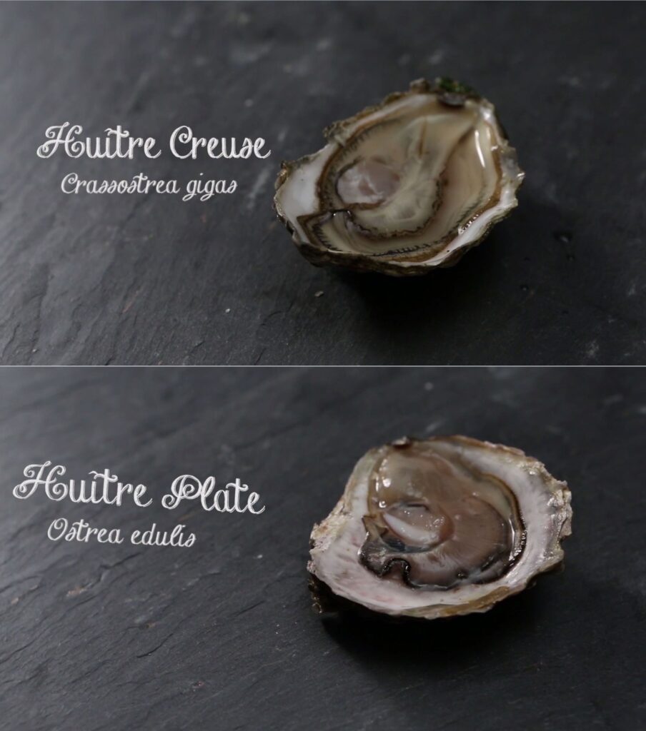 - L’huître creuse (Crassostera gigas): est une espèce venue du Pacifique, apportée en Europe dans les années 70. La coquille est plus allongée. L’avantage de cette huître est sa vitesse de croissance relativement rapide. Cette caractéristique fait de l’huître creuse l’espèce la plus cultivée (90% de la production nationale). La coquille de cette huître est rugueuse et irrégulière, elle pèse entre 30 et 150g. Sa chair est plus ou moins iodée et crémeuse.